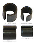 Reduzierhülsen Mit Reduzierhülsen können Sie den Durchmesser des Rückenlochs verringen. Dabei können die beiden Größen auch kombiniert werden, d.h. die kleinere Hülse kann in die größere Hülse gesteckt werden, so dass insgesamt eine Reduktion auf 11 mm möglich ist. Die Reduzierhülsen bestehen aus Federstahl, so dass sie fest in dem Rückeloch fixiert bleiben. |