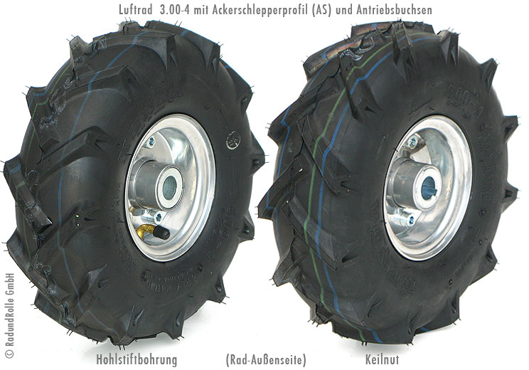 Angeriebene Laufräder mit Ackerschlepperprofil (AS-Reifen) für Einachsschlepper, Antrieb, Antriebsnabe, Antriebsbuchse, Keilnut, Hohlstift, Holstiftbohrung, Federkeil, Passfeder, Hohlstift-Bolzen, 280x90mm 3.00-4 Luftrad, Lufträder, Industrierad, Gummirad, Gummiräder, Luftgummirad, Luftgummiräder, Kinder GoKart-Rad, GoCart-Räder, Elektromobil-Räder, Online-Shop, Rad Räder kaufen, privat, Privatkunde, Seifenkistenräder, bobby car, Bobbycar, Seifenkistenraeder, Cart